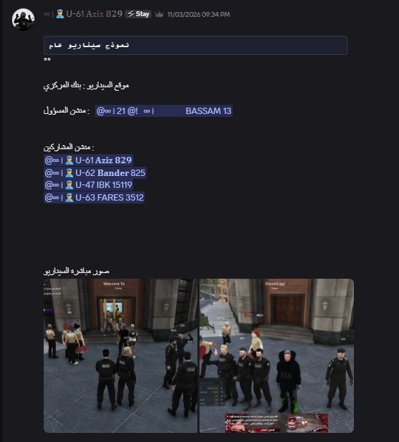 يجب على جميع الأفراد الالتزام بطريقة الإصطفاف العسكري أثناء السيناريوهات